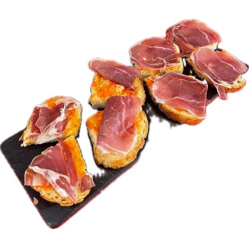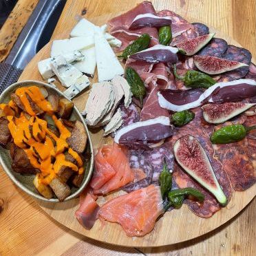 Charmutos, queso, pimientos, foie gras, salmón, pechuga de pato seca, patatas bravas