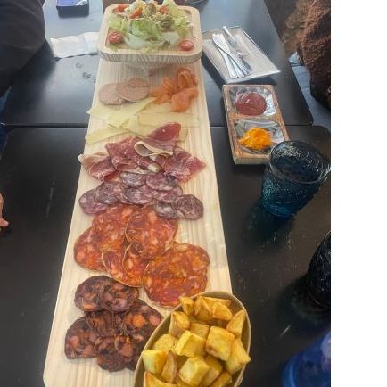Cold cuts, cheese, peppers, foie gras, salmon, dried duck breast, patatas bravas