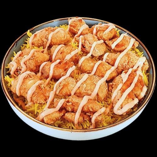 patatine fritte o riso, beauf alla griglia, cipolle fritte, jalabino, salsa dello chef.