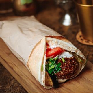 Gehakt, tomaat, ui, augurk, sesamsaus.