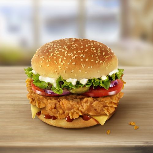 hamburger di pollo, 2 offerte, 2 ali, patatine fritte, salsa