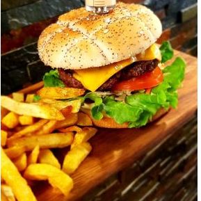 Patatas fritas o arroz, beauf a la plancha, cebollas fritas, jalabino, salsa del chef.