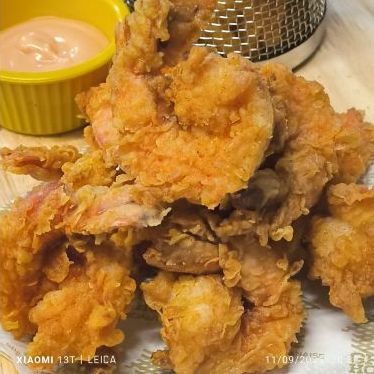 hamburguesa de pollo, 2 filetes, 2 alitas, papas fritas, salsa