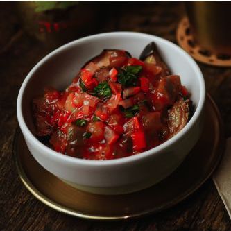 carne macinata, pomodoro, cipolla, sottaceti, salsa di sesamo.